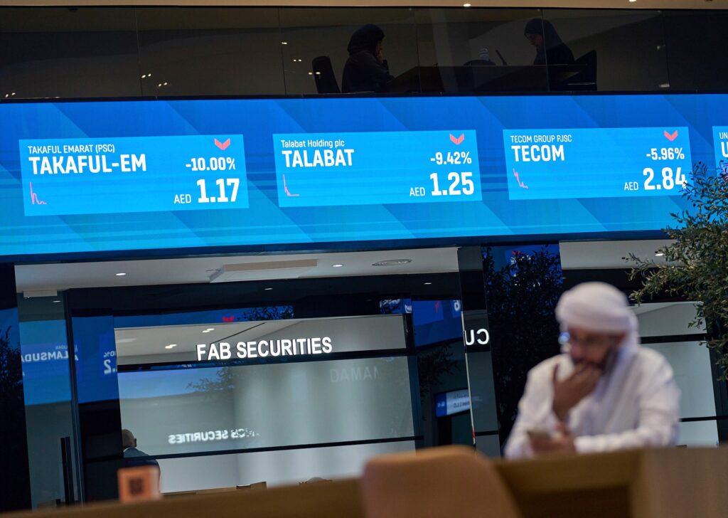 Dubai and Abu Dhabi’s benchmark indexes have plunged about 16 percent and 9 percent, respectively, since the United States and Israel launched their war on Iran on February 28.
